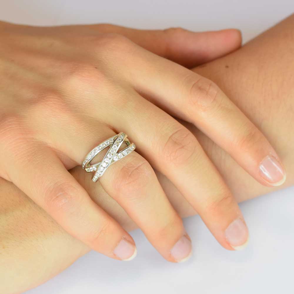 Tierce est une alliance sophistiquée formée de trois liens entrelacés pavés de diamants étincelants. Les anneaux d’or s’enroulent autour du doigt et se rejoignent pour ne former plus qu’un seul ruban précieux. Célébrez votre amour et exprimez vos sentiments grâce à cette alliance trois anneaux originale et délicate.