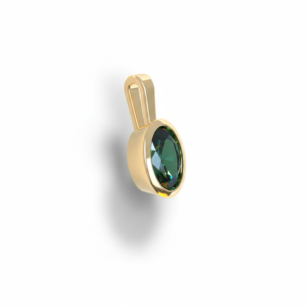 Cloval est un pendentif serti clos pour un saphir facetté de forme ovale.