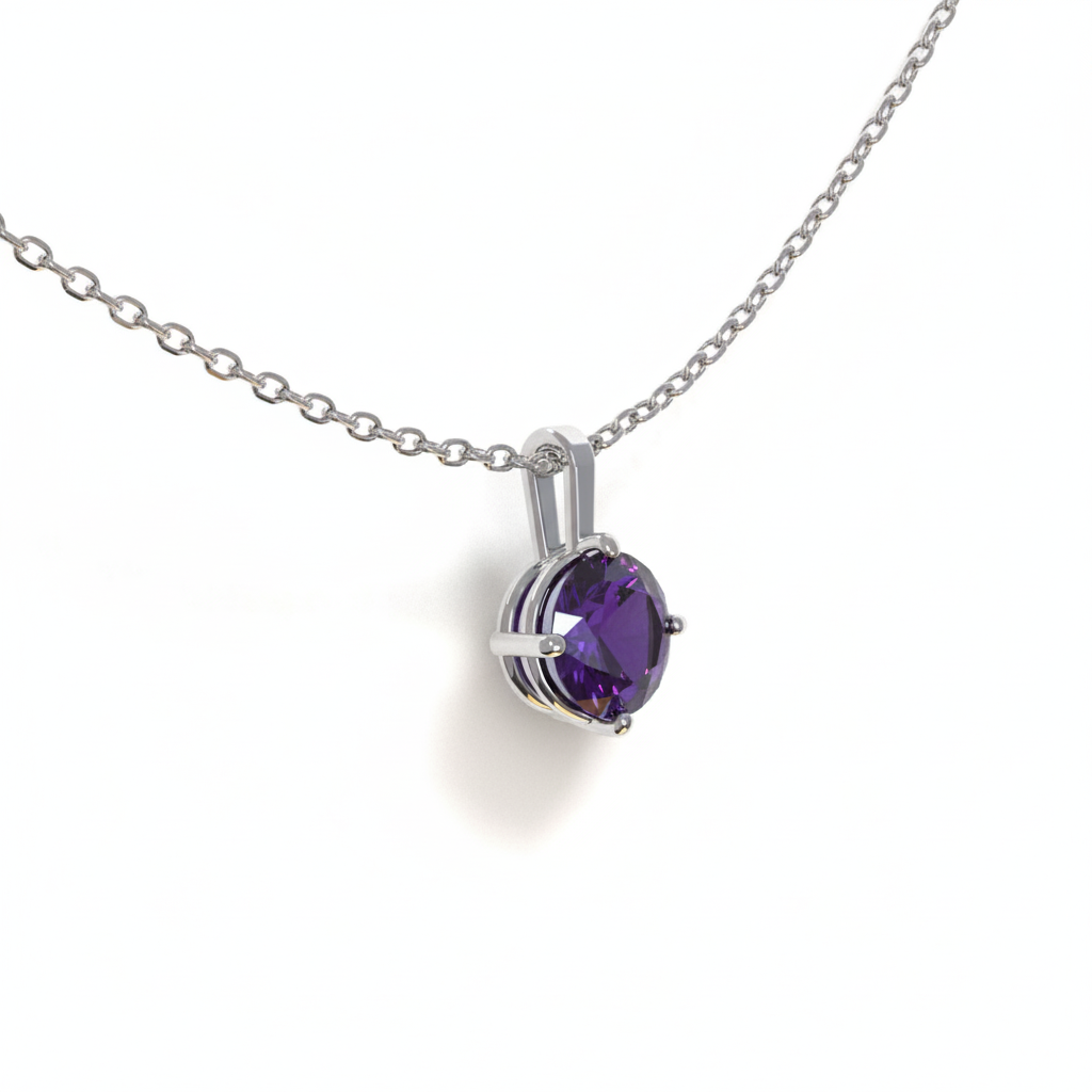 Griorth est un pendentif serti griffes ordonnées en croix pour un saphir facetté de forme ronde.