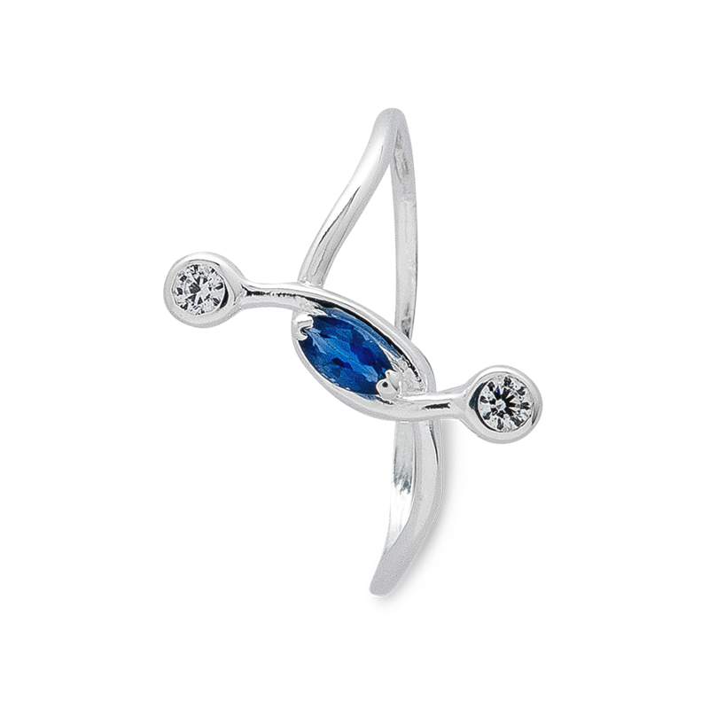Les lignes courbes prolongées par les diamants mettent le saphir en valeur et font toute l’originalité de cette bague.  À retrouver dans Petites folies, notre collection dynamique et dansante.
