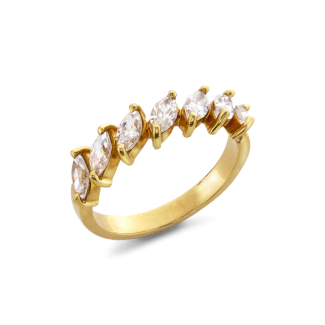 Marquise – Demi-alliance en or 18 carats (750 millièmes) ou platine (alliage au choix) et diamants.