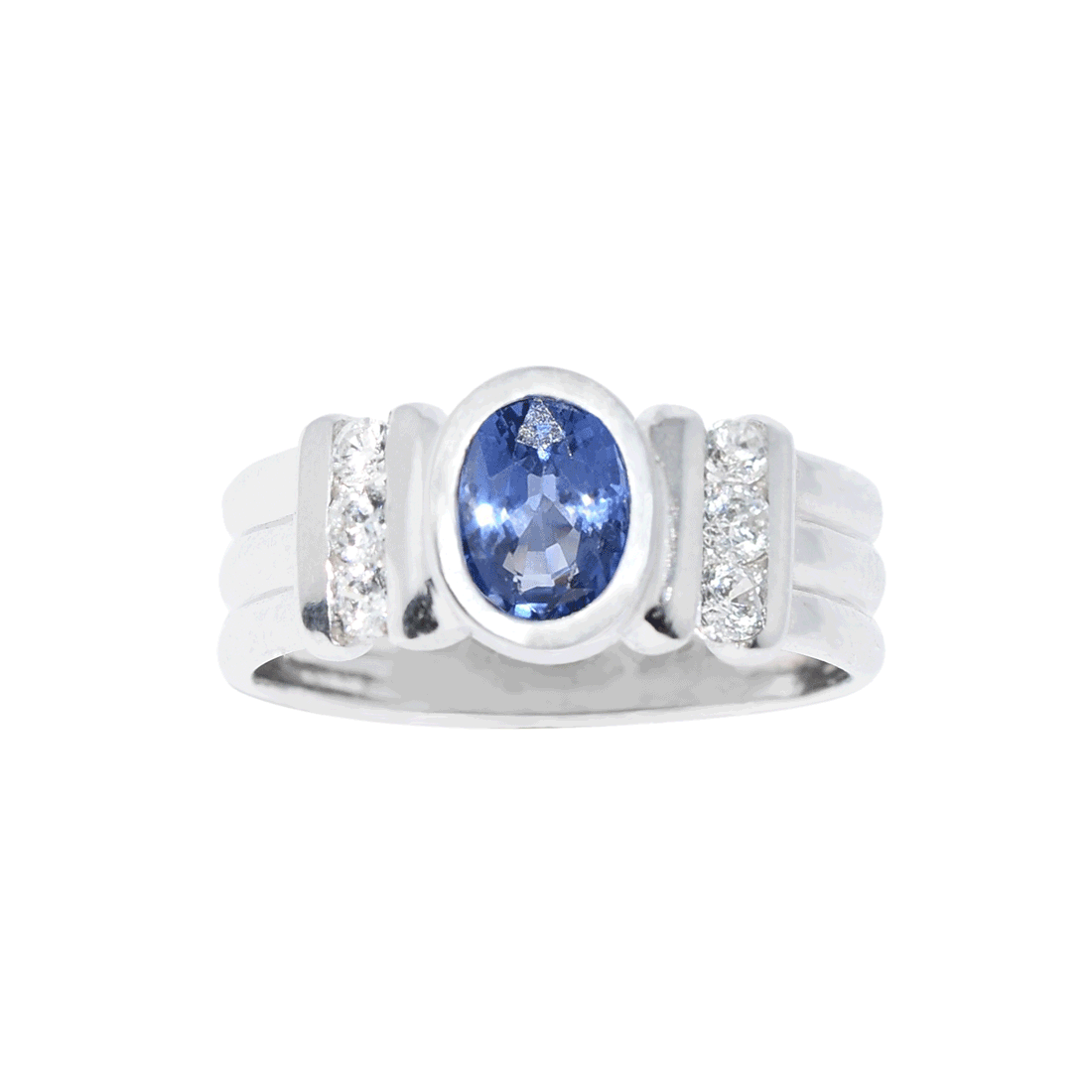 | Poids pierres | Saphir 1.00 carat., 6 diamants 0.24 carat. |